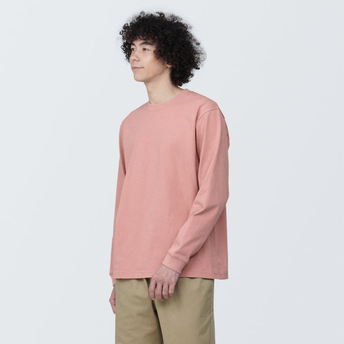 Pink Muji Washed Heavy Weight Crew Neck Long Sleeve Men T Shirts | AW7U7H52E